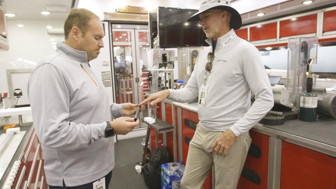 Burton Christie: I travel about 40 weeks a year to tour events across the world. Having the opportunity to work with players and these guys out here, the OMs, to make an end product of a great player play great golf on the weekend, that's what makes it exciting. And we don't pay anyone to use our product. So our product is chosen by the players. The player's demand is so high. Each truck has to keep a supply of our product in the van to meet the player's needs each week for new club builds or re-gripping. Unique in the fact that no other component company out here has the amount of supply that we have, or the demand of product that we're able to supply around anywhere from 115 to 125 players each this week using Golf Pride Grips. We will do everything we can to touch as many or all of those players that we can just to check in, make sure they are good. Good to go for this week. What they feel, what they like and what they want in a piece of equipment? We've seen over the last five or six years the size of grips grow out here as far as installation. Players building up the tape underneath the grip to get a larger grip. So we took that overwhelming feedback of larger grip size usage out here and we were able to take that and develop the MCC Plus4, which has done very well for us. Make sure we get our product in a player's hands and you get greater than that 80% that we have now. And that's what makes it exciting.