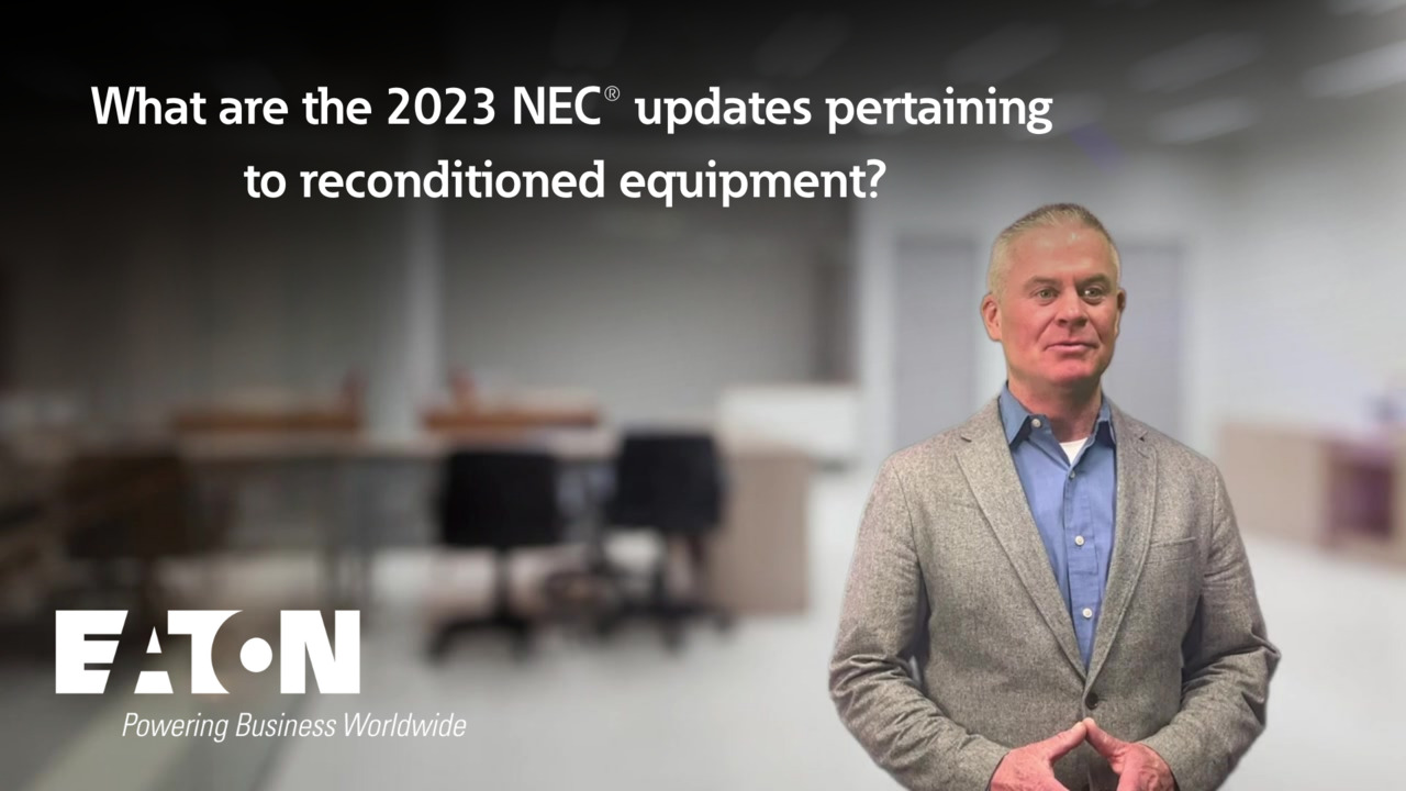 Discover the latest updates in the 2023 National Electrical Code (NEC) related to reconditioned equipment in this informative video from Eaton. Also, learn the minimum requirements, permissions, and prohibitions designed to safeguard owners, physical property, and public health. Whether you’re a seasoned professional or just getting started in the electrical industry, understanding these changes is essential. Stay tuned for more detailed information on all the changes and updates to the 2023 NEC. To learn more visit Eaton.com/NEC #NEC2023 #ElectricalCode #ReconditionedEquipment #ElectricalSafety #BuyerBeware #ElectricalDesign #ElectricalEngineering